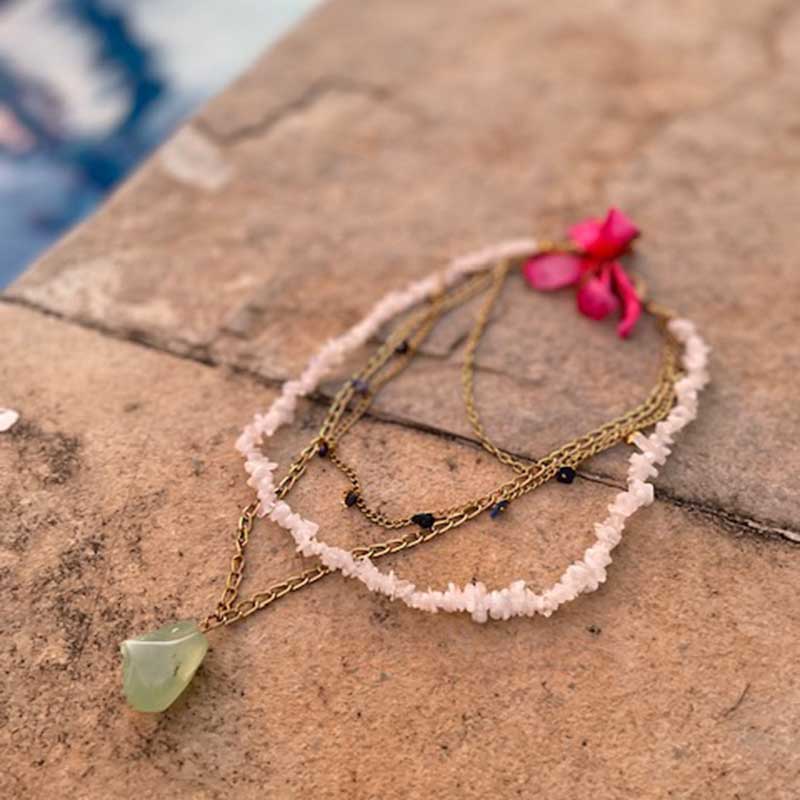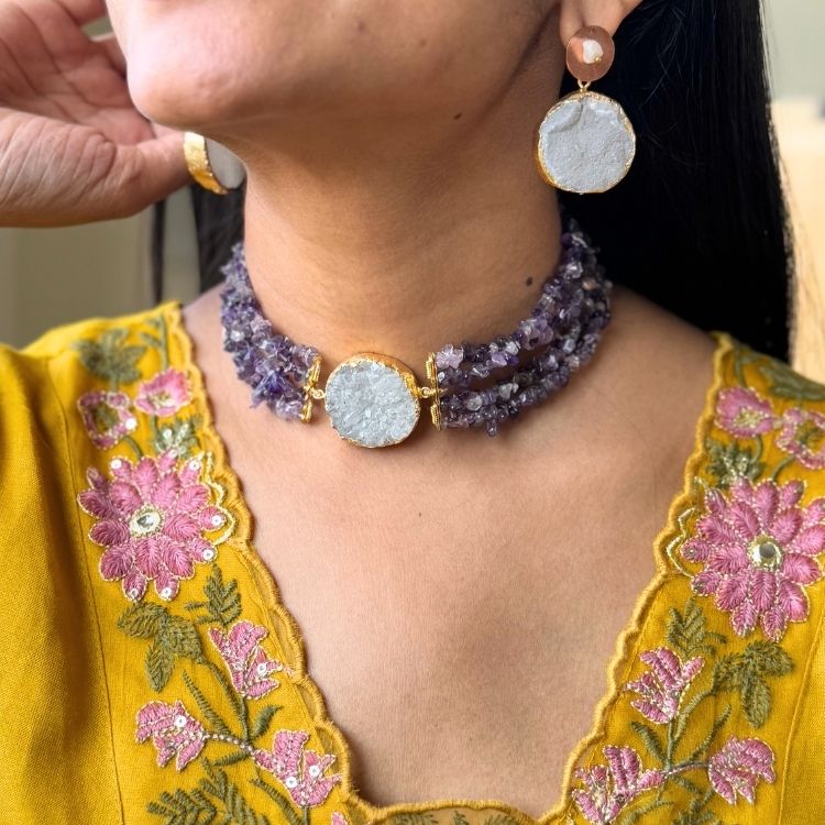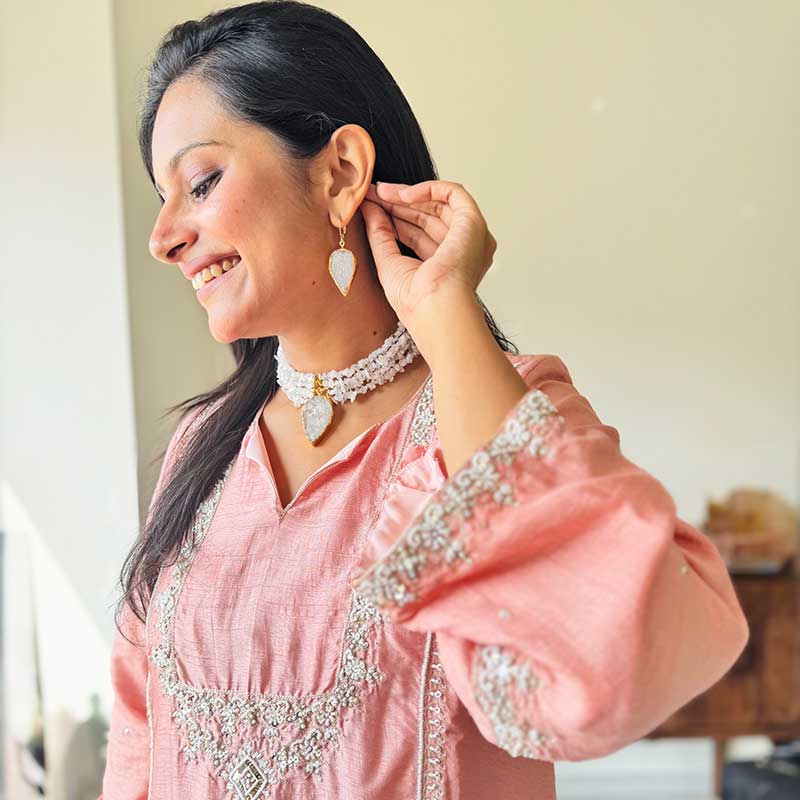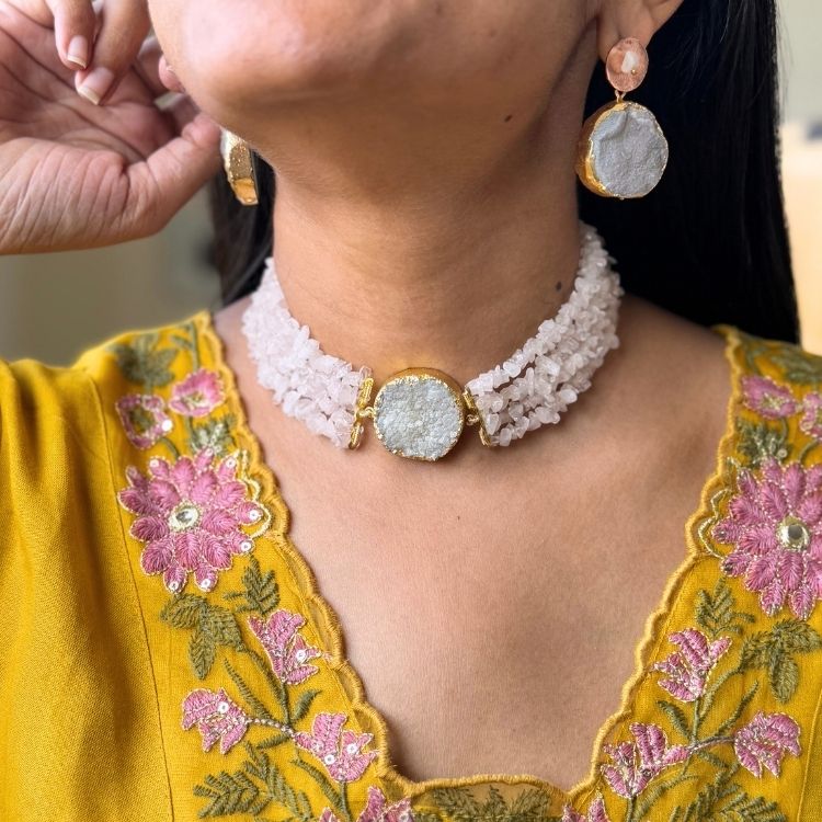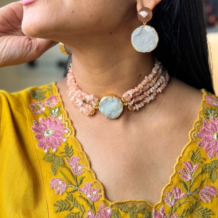 Naina Rose Quartz Pink Majestic Set With Colorful Stones Danglers Earrings