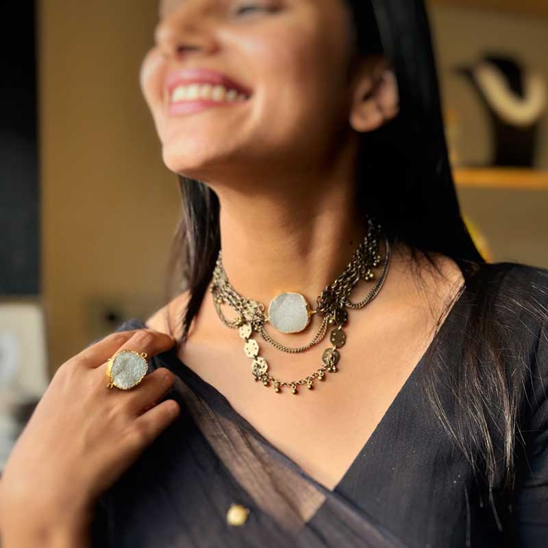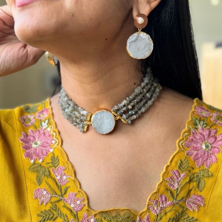 Graceful Fusion Grey-Red Stones Wedding Jewelry Set