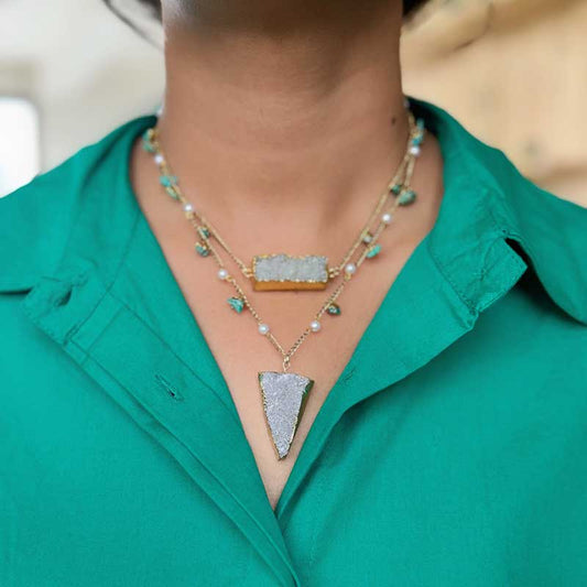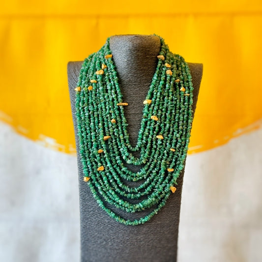 Grand Dark Green Layer Necklace Set with Floral Dangler Earrings
