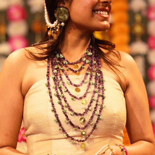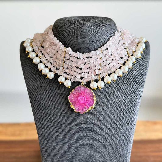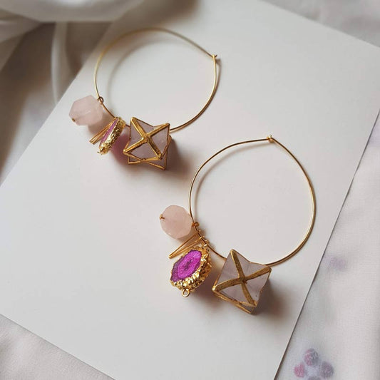 Naina Rose Quartz Pink Majestic Set With Colorful Stones Danglers Earrings