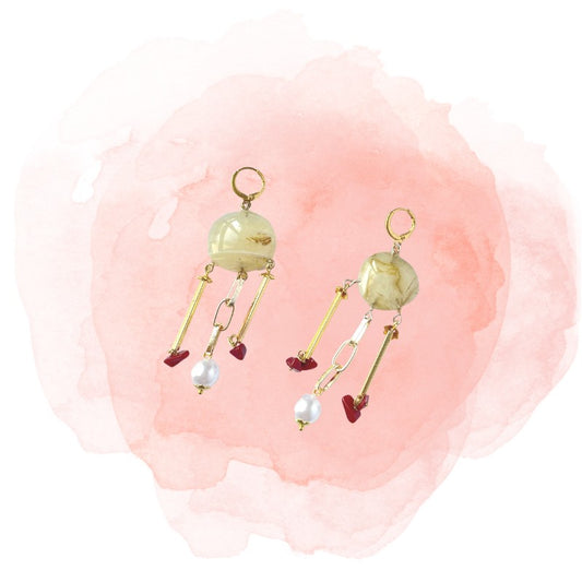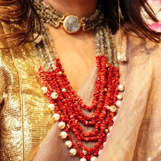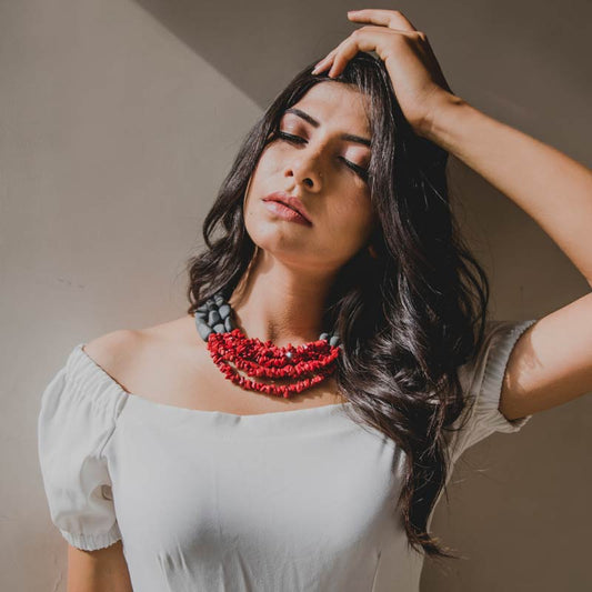 Graceful Fusion Grey-Red Stones Wedding Jewelry Set