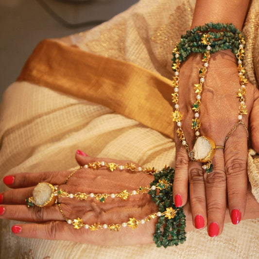 Timeless Deep Green Floral Haath Pocha Pair -Wedding Accessory