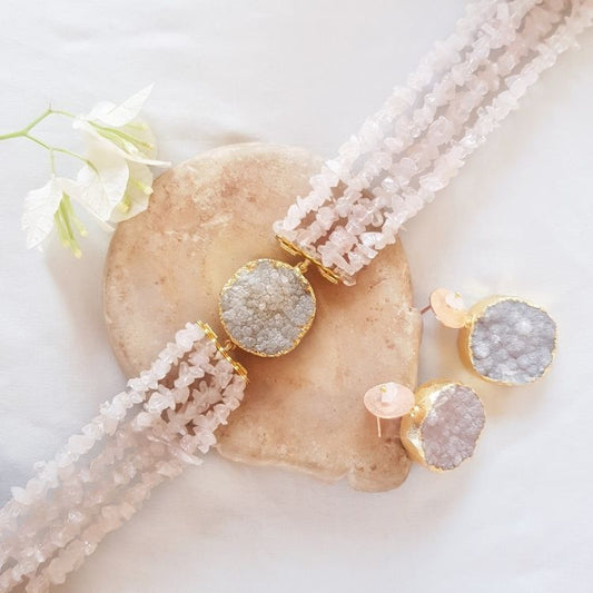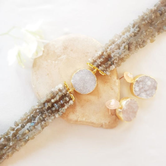 Graceful Fusion Grey-Red Stones Wedding Jewelry Set