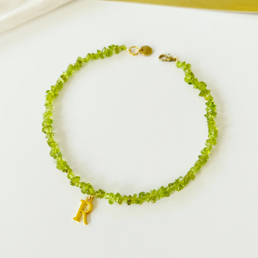 Green Peridot Stone Alphabet Necklace